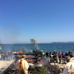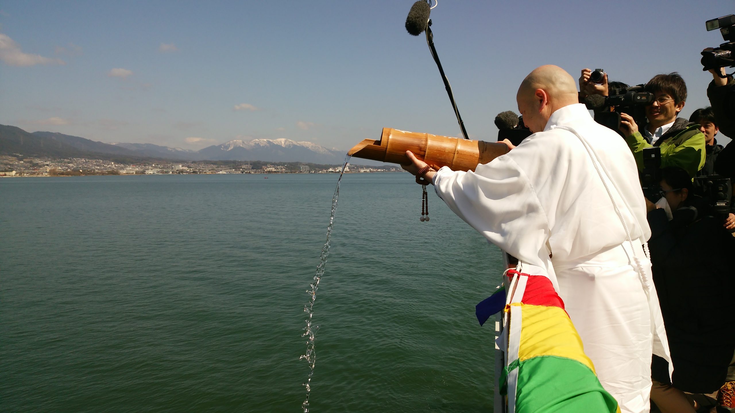 湖上に紙塔婆を流して水没者の霊を慰め、法水を注ぎ湖水の浄化祈願、