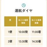 2025年4月5日(土)~ 1便10:00発 11:00着 2便13:30発 14:30着 3便16:00発 17:00着 ※土・日・祝日のみ運航 |