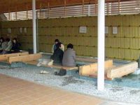 足湯は22名様まで利用できる大きなもので、幅広のゆったりとした湯船に足を預けてのんびりしてください。タオルの販売もしているので、手ぶらで御来園いただいても大丈夫です。