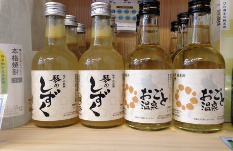 一押しの地酒生原酒「おごと温泉」や、火入れ(加熱処理)した「おごと温泉」とユズを搾り入れた「琴のしずく」も置いています。容器のラベルは琵琶湖岸で刈り取ったヨシ製で、「オール滋賀産」の地酒を目指しています。