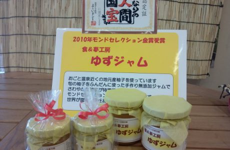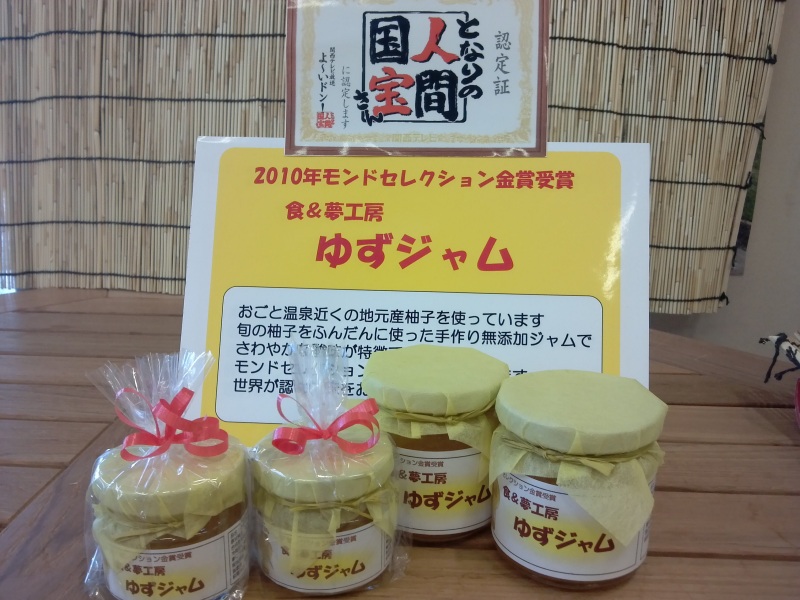 観光公園でしか売っていない柚子こしょう・ゆず七味や、関西の方にはおなじみのテレビ番組『よ~いドン!』のとなりの人間国宝さんで紹介された地元の方がすべて手作りで作られているゆずジャムもあります。